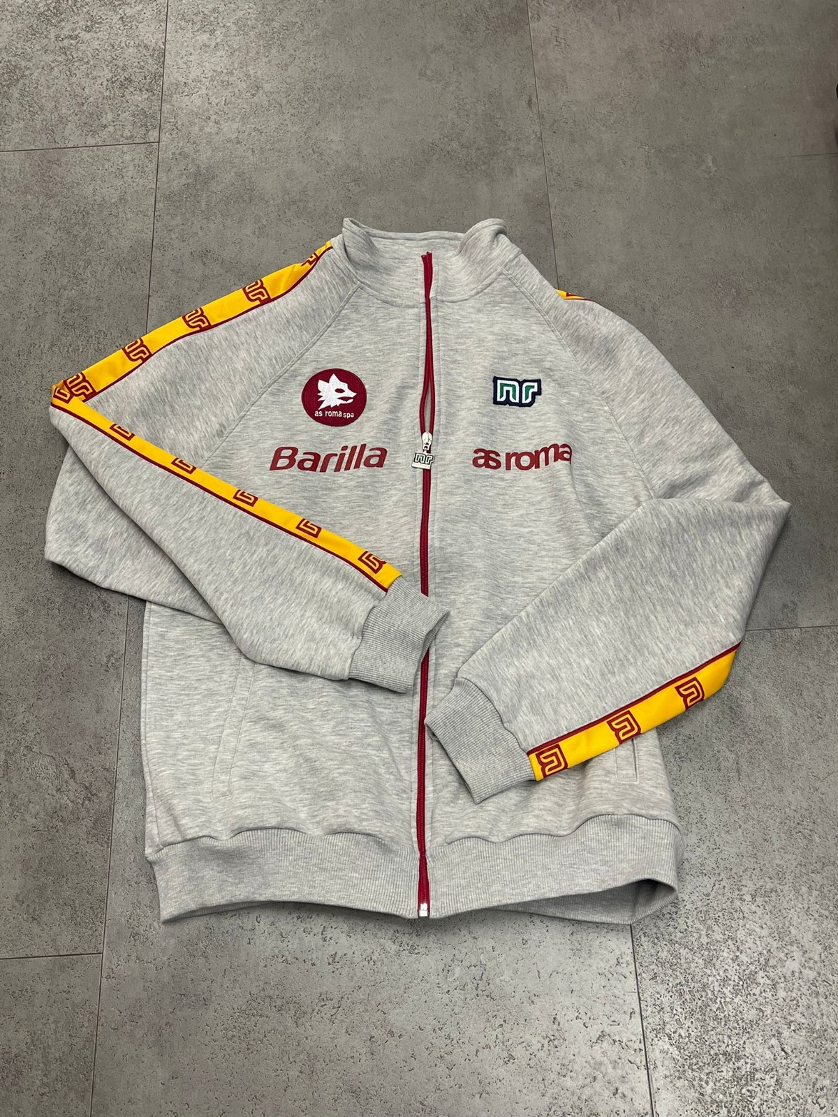 La giacca da allenamento originale dell'AS Roma della stagione 86/87 con il nome dello sponsor BARILLA dipinto sulla schiena.